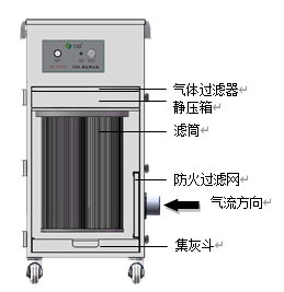 玻璃纖維材質HEPA高效過濾筒;進口材質,性能穩定,過濾麵積大,高效淨化直徑0.3μm的微粒,精度高達99%,達歐洲Airlaw-2000工業生產氣體室內排放標準。